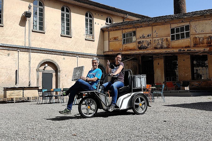 Aus einem KYBURZ DXP 2ndLife schaffen wir ein Vierradfahrzeug, welches zum einen in einer geeigneten, isolierten Transportbox Pizzas zustellen kann und zum anderen (idealerweise logistisch optimal kombiniert...) vorne zwei Gäste ins Pizzarestaurant (hin- und zurück....) chauffieren kann.