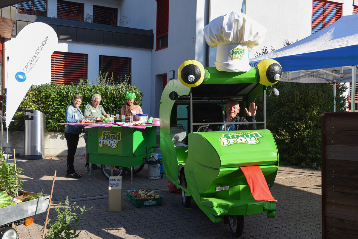 Unser Food-Frog ist ein multifunktionales Fahrzeug für die Produktion, Vermarktung und den Genuss von frischen Lebensmitteln in roher oder verarbeiteter Form. Das Fahrzeug besteht aus einem Zugfahrzeug (Food-Frog) und einem oder mehreren Anhängern, mit unterschiedlichen Funktionen. Das Ziel dabei ist, Lebensmittel von der Aussaat, über die Ernte, den Verkauf bis zum Genuss begleiten zu können und so den gesamten Kreislauf zu begleiten