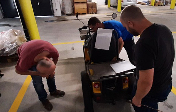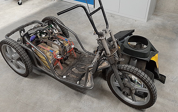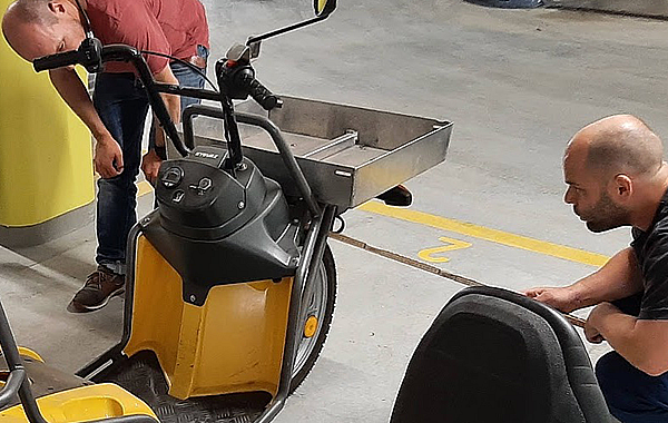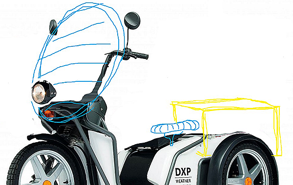 Der DXP wird für die Essensauslieferung umgerüstet. Mit beheizbarer Isolierbox, Windschutzscheibe und angepasstem Sitz kann das wendige Fahrzeug auch in der quirligen Metropole den grossen Hunger der Mittagspause befriedigen.