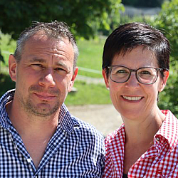 Wir sind Doris & Ueli Pfister und bewirtschaften gemeinsam unseren Mutterkuhbetrieb. Ueli hat den Hof 2006 von seinen Eltern übernommen, Doris kam mit ihrer Tochter Kim 2012 dazu. Gemeinsam hegen und pflegen wir mit viel Liebe unsere Herde mit 22 Mutterkühen und ihren Kälbern sowie „Babou“, unseren Aubrac-Stier. Wir produzieren Fleisch nach den Richtlinien des Labels „Natura-Beef“.